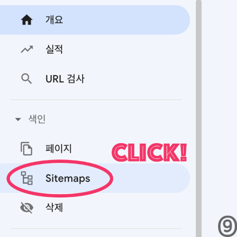 - 그 후 구글서치콘솔에서 Sitemaps 탭으로 들어갑니다.