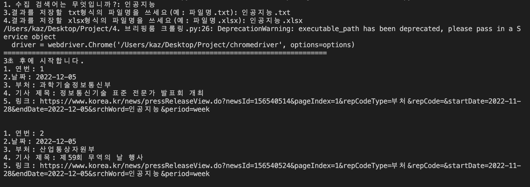 주요뉴스와 보도자료를 파이썬 크롤링 작업으로