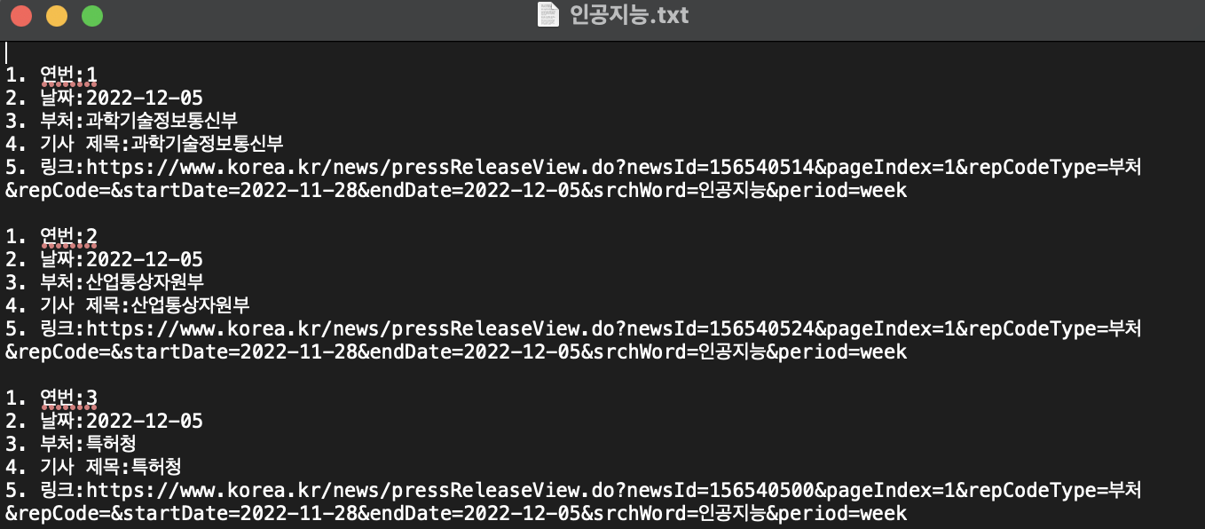 (연번, 기사 제목, 링크)세 가지만 가져왔지만,