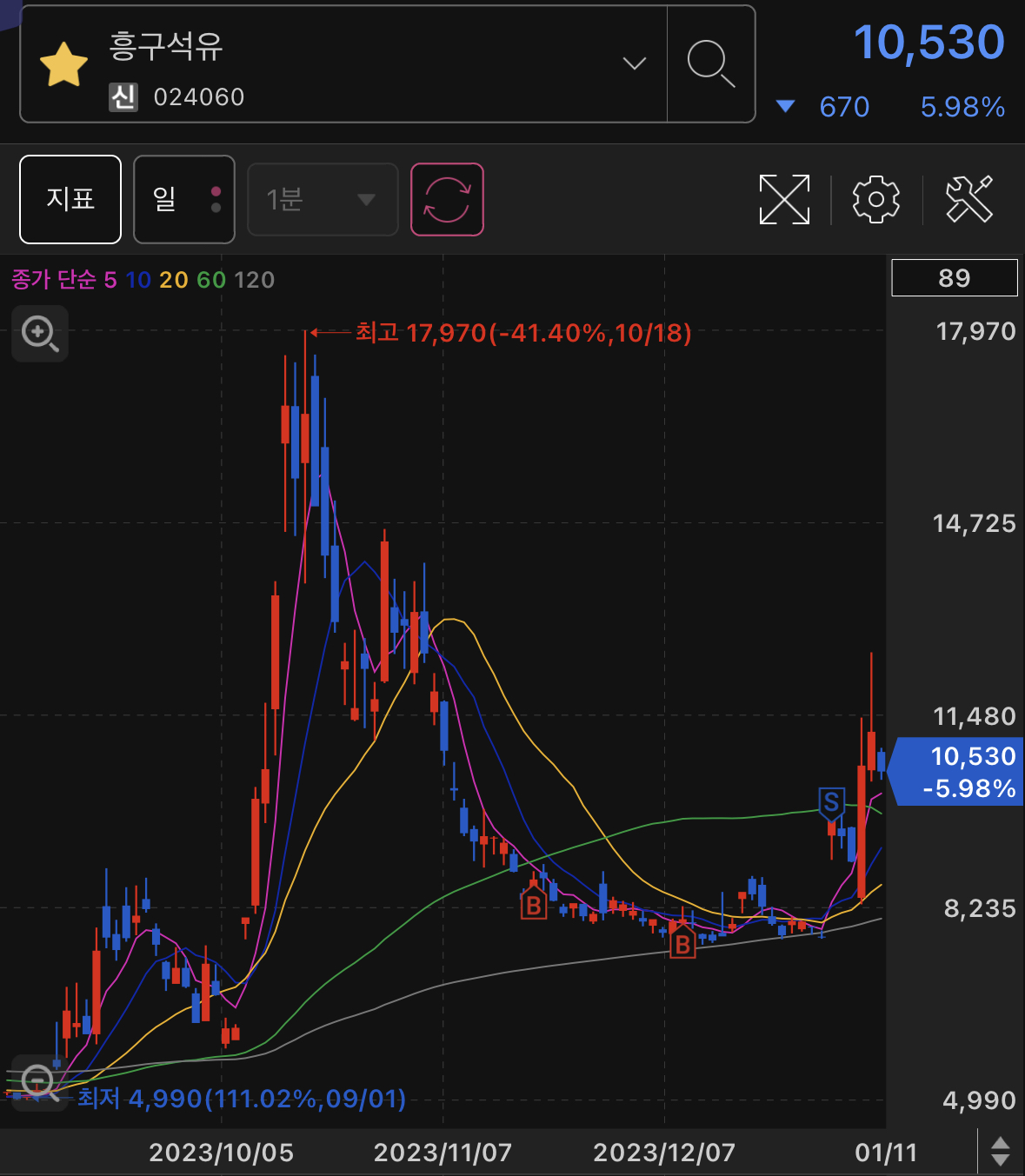 스윙종목으로 편입한 흥구석유